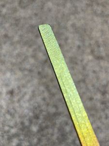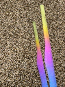非常绚丽的一款烤肉夹,光彩夺目,非常耀眼,让人爱不释手!质地轻盈,大小合适,尾端质地重,前段质地轻柔,是我喜欢的款型。如果性价比再高点,烤肉夹尖头再宽那么一点就更完美了!