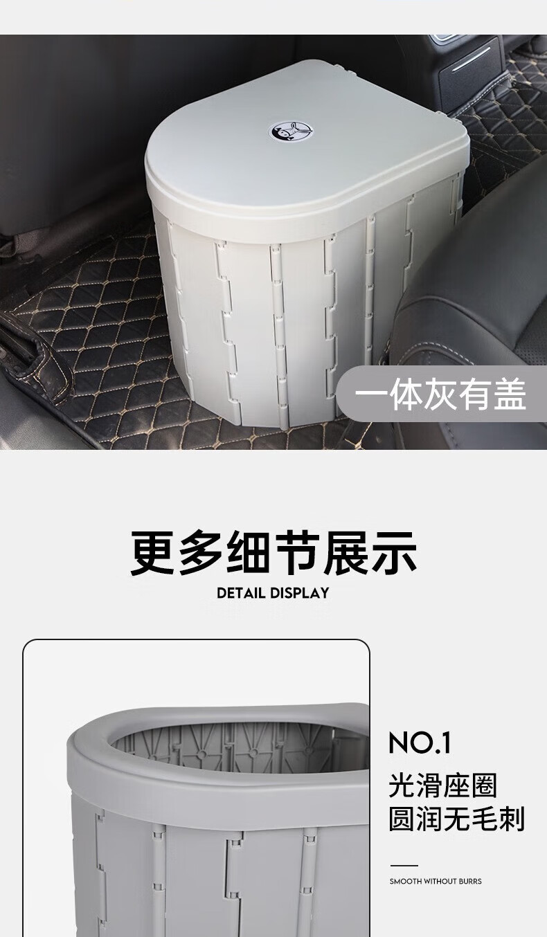 麓格立户外马桶 带盖一体折叠露营便携式应急厕所自驾游车载移动坐便器 一体灰带盖【固化剂+垃圾袋】