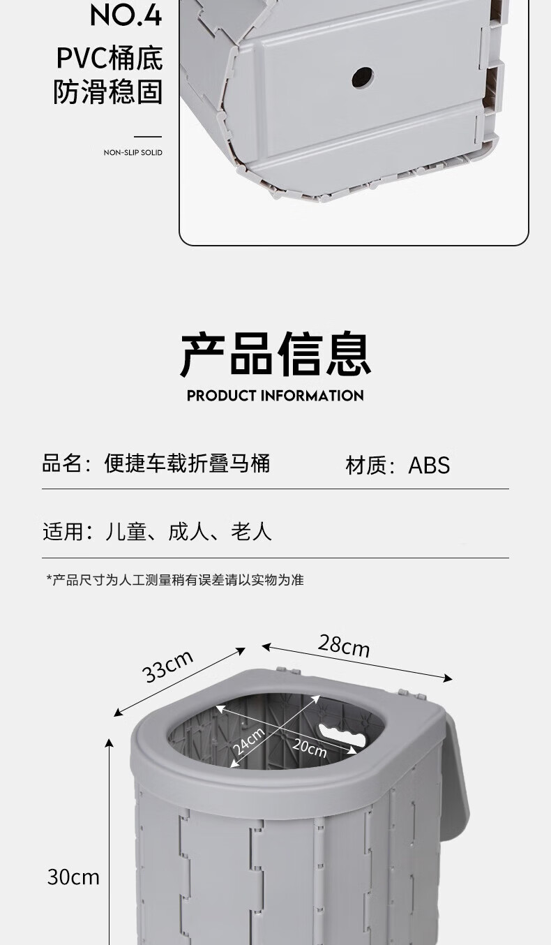 black dogPP折叠马桶户外露营车载便携防臭旅行应急男女移动马桶 夜幕黑