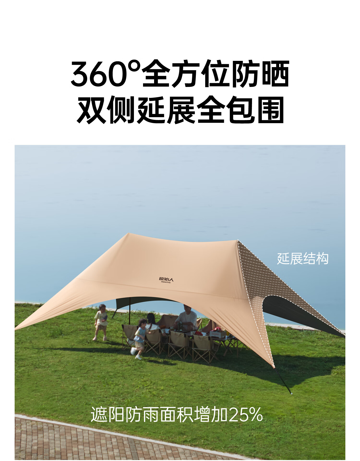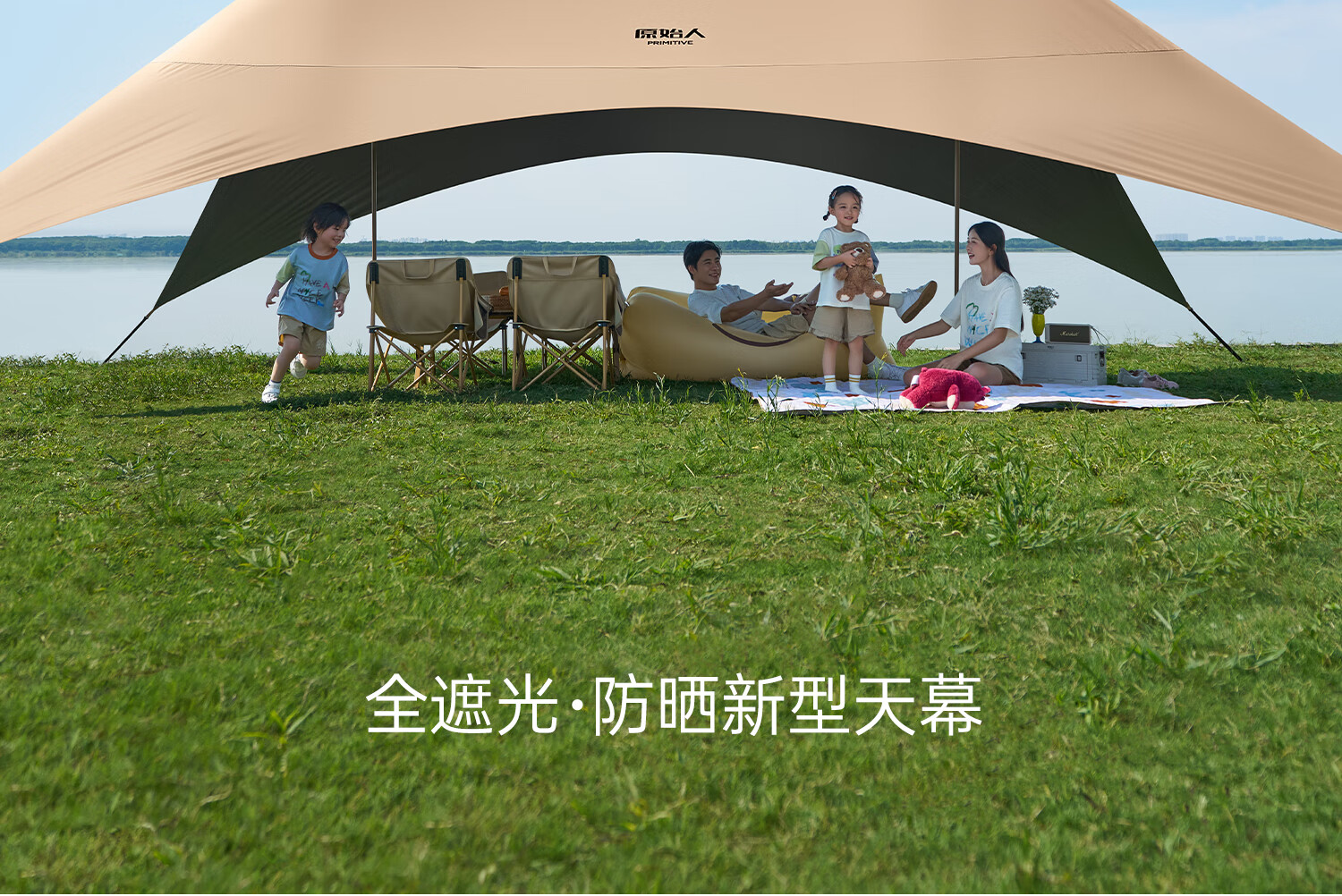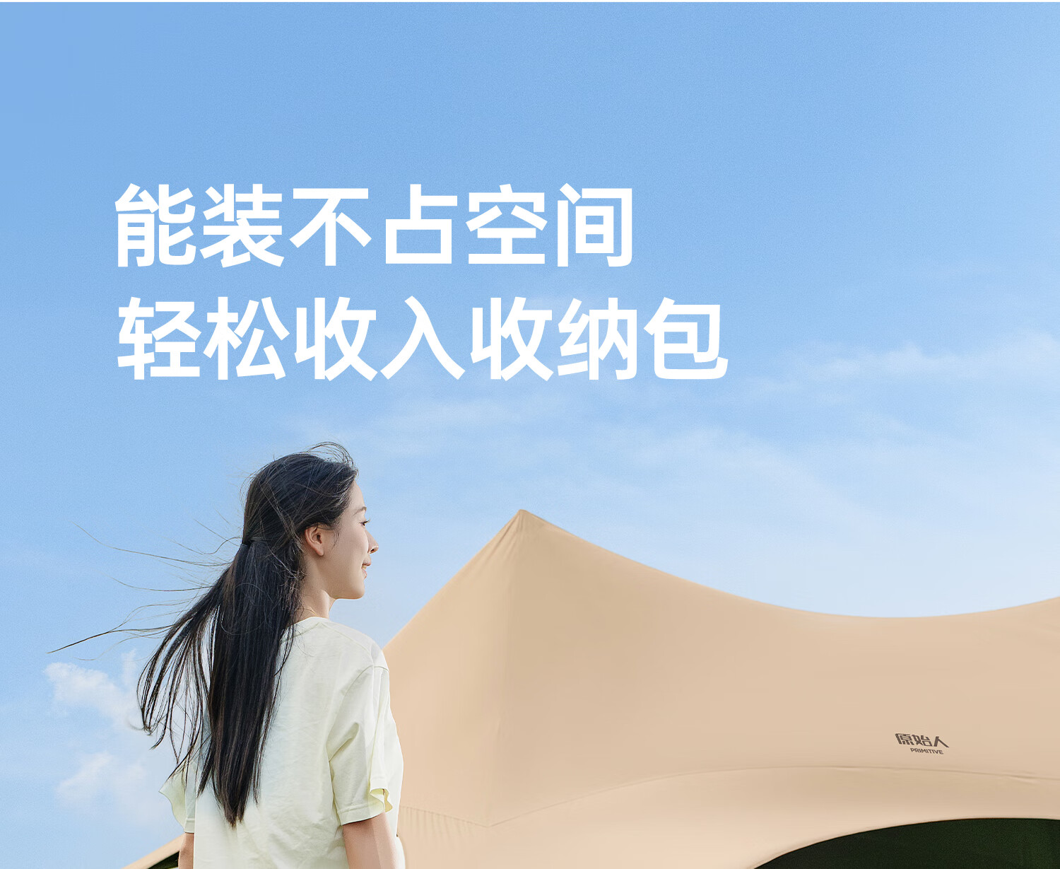 原始人(The Primitive)户外速搭天幕帐篷速开免搭建防雨防晒便携懒人新型燕尾露营野营 28㎡天幕+150轻云+经典卡其克米特*6