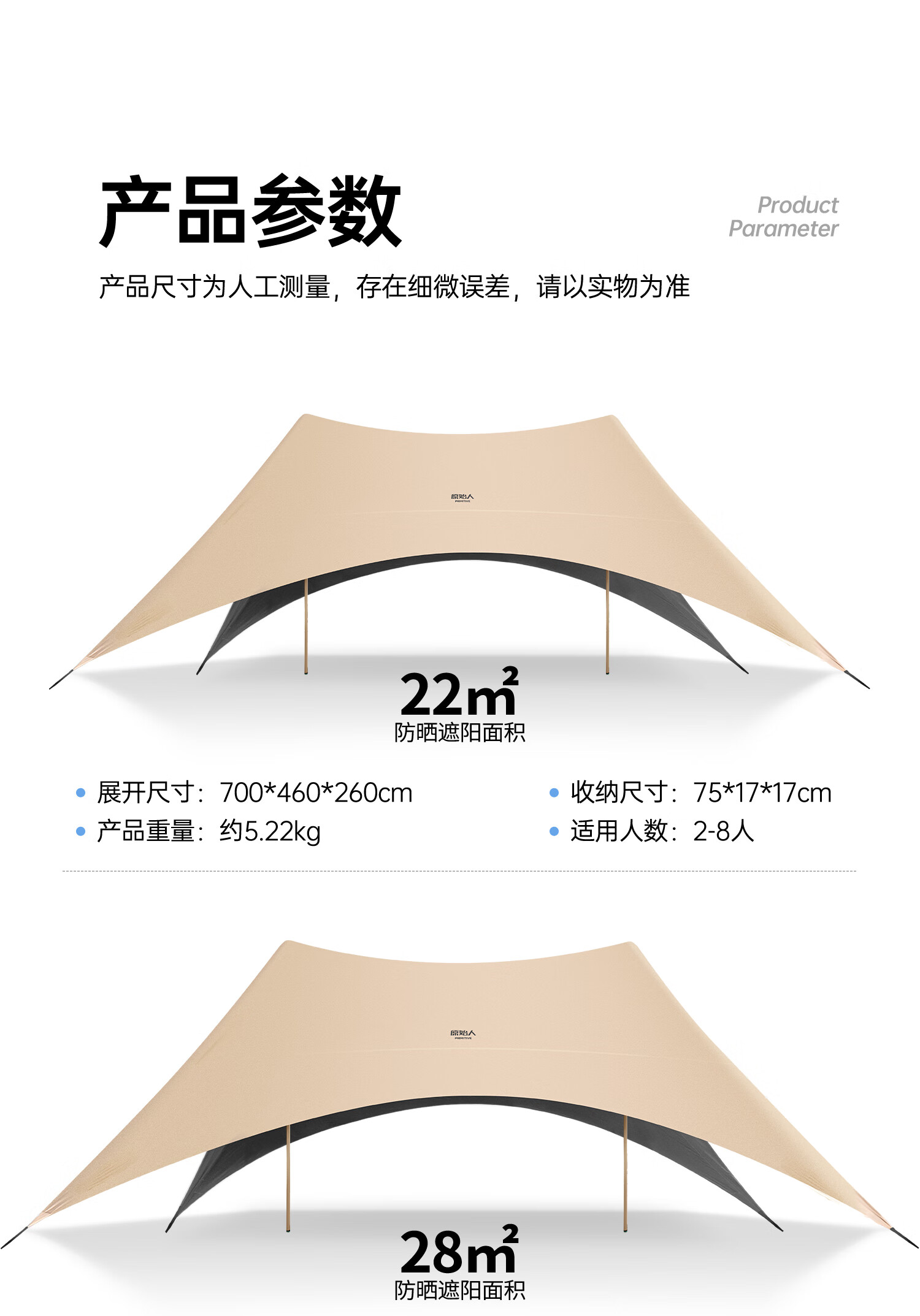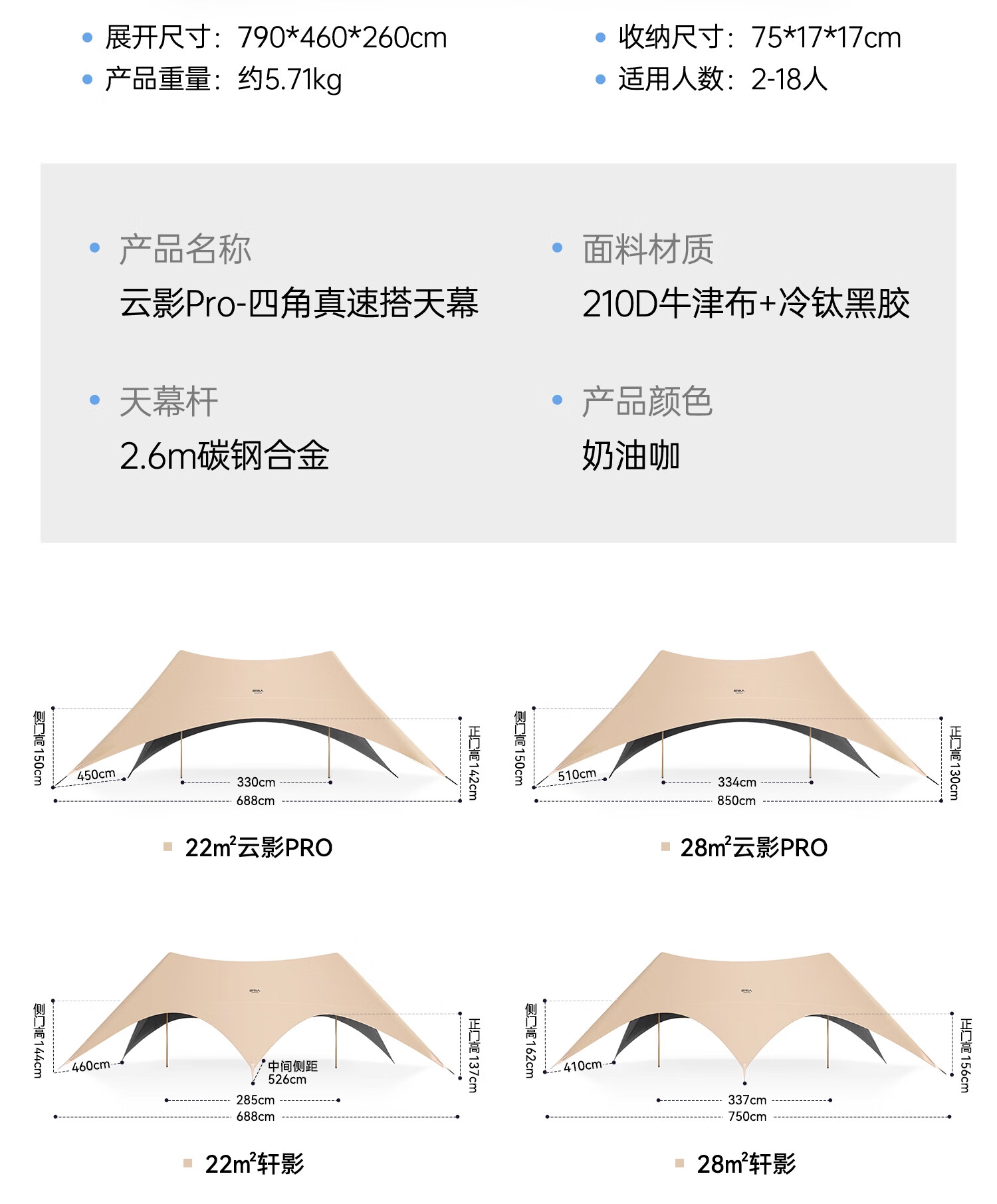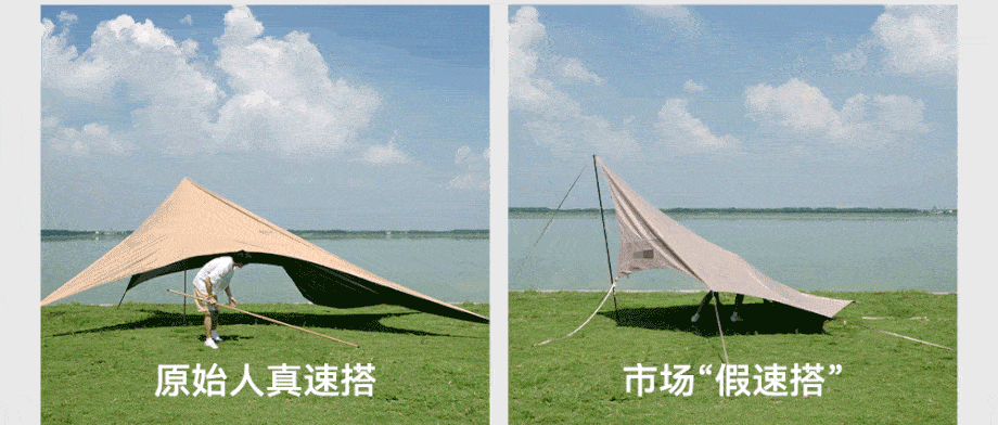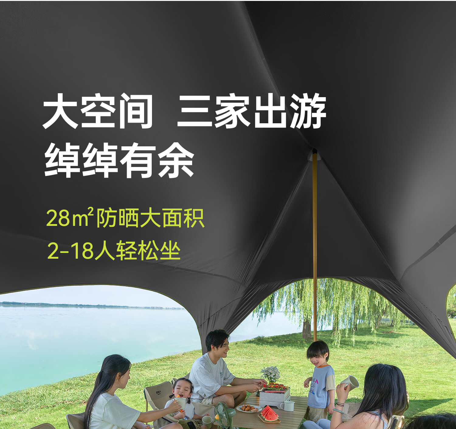 原始人(The Primitive)户外速搭天幕帐篷速开免搭建防雨防晒便携懒人新型燕尾露营野营 28㎡天幕+150轻云+经典卡其克米特*6