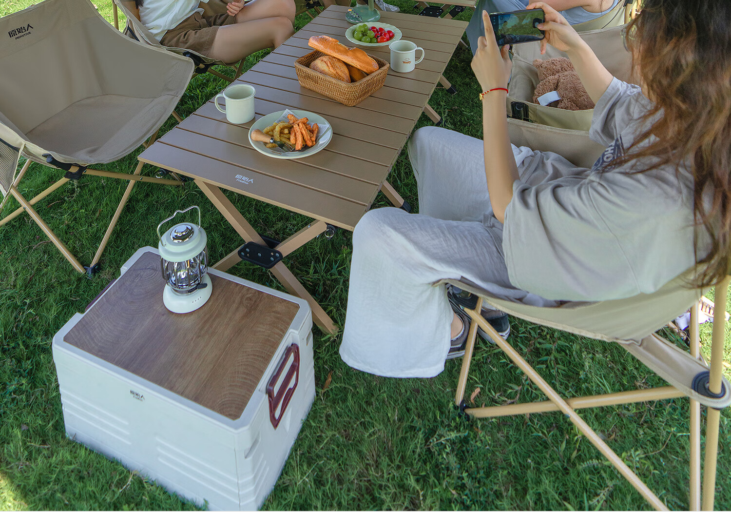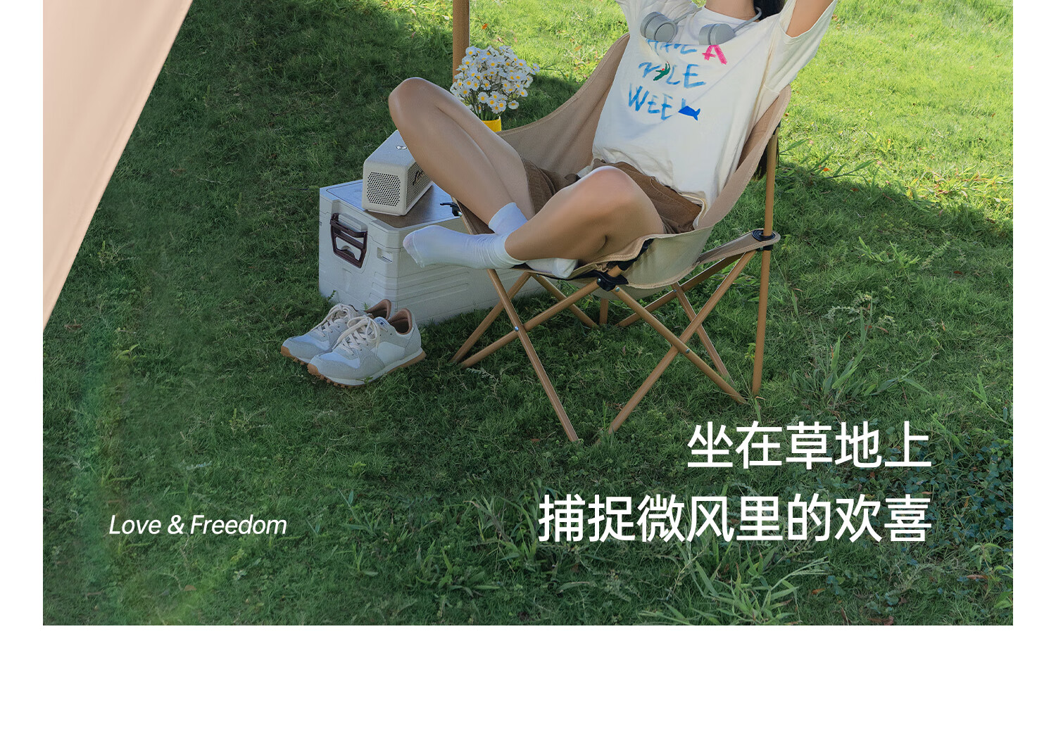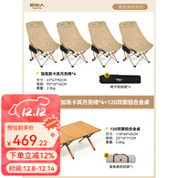 原始人(The Primitive)户外折叠椅月亮椅露营折叠椅子折叠凳便携凳子钓鱼凳钓鱼椅 经典加高卡其*4+120双面铝桌