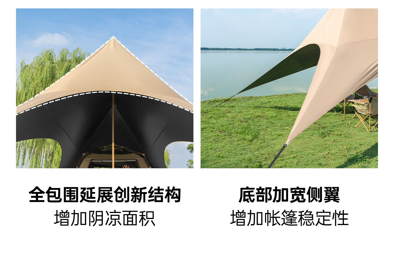 何佳功新燕尾天幕户外露营懒人免安装加厚黑胶防晒遮阳防雨速搭天幕 速搭型12㎡银胶天幕3.3*3.6米2-4人(1