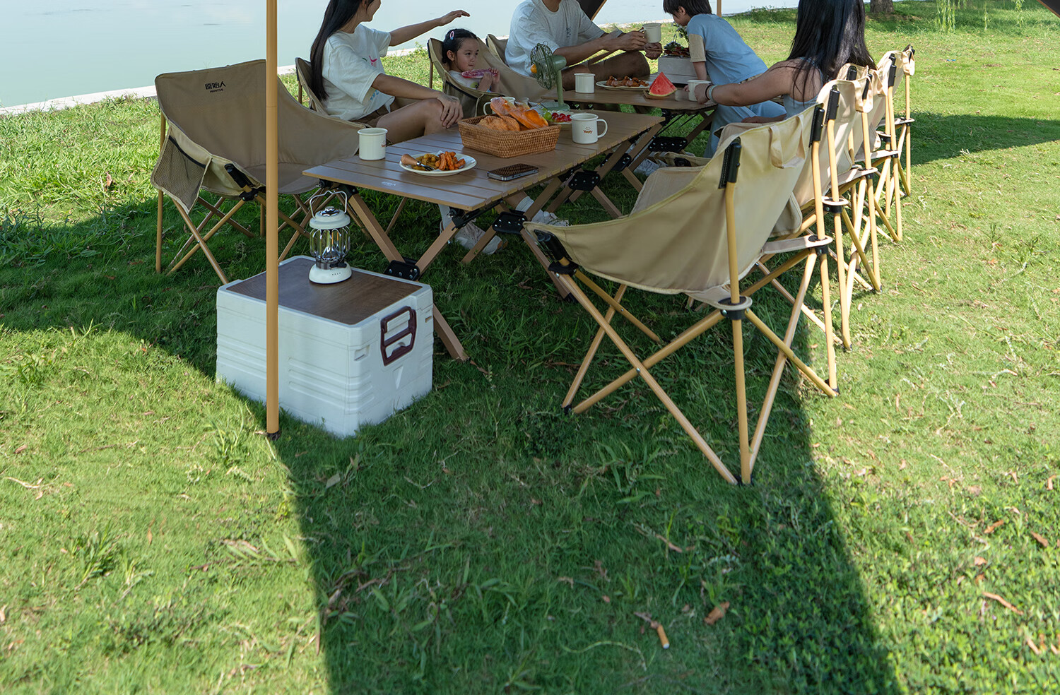原始人户外蛋卷桌便携式折叠桌野餐桌椅露营装备用品野炊野营套装 120黑色+黑色月亮椅*6