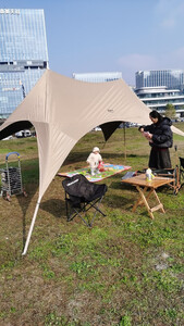 收到就拿出来用了,这个天幕搭收超省心!撑开就能用,收卷不费劲,户外野餐非常适用 比那种要绑风绳的方便
