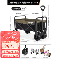 原始人露营车野餐户外折叠小推车可折叠手拉车遛娃郊游帐篷收纳桌板拖车 250L 堆叠容量【黑绿】加宽越野轮
