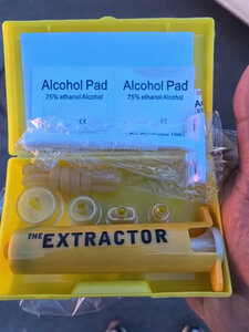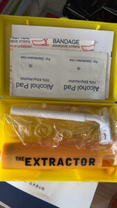 因为经常户外,对🐍特别畏惧,进来保护野生动物力度极大,蛇也越来越多,经常听到咬人的事,所以备了一点蛇药,配合这个蛇毒抽取器,以防万一。小盒子配置还挺全,各个规格的抽取头,止血带,创可贴,酒精消毒片,都有。甚至还有剃须刀。