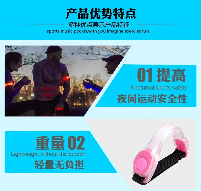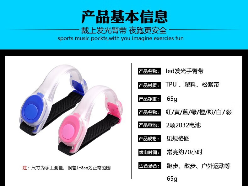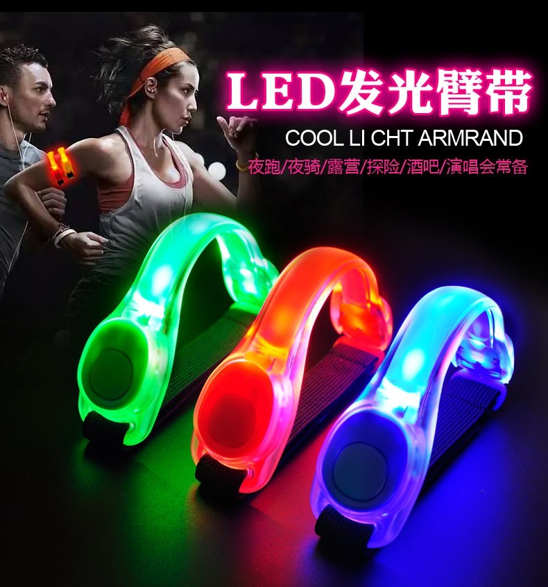 爱加芬 发光跑步手臂带 led运动手环夜跑骑行安全信号灯绑腿腕带反光装备 臂光灯7彩色单只