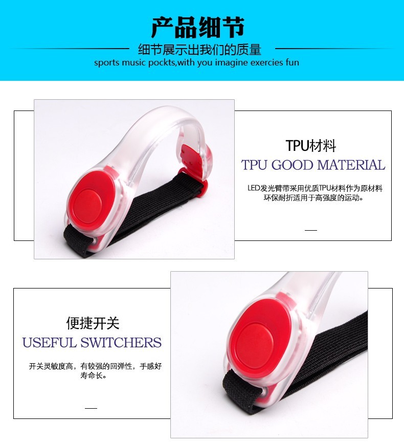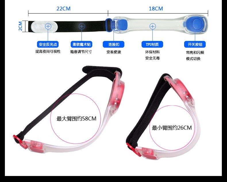 瑞尔士夜跑发光手臂带led运动手环骑行安全灯绑腿束裤带警示跑步手臂灯 升级彩色变光(充电款) 大码(推荐体重140斤以上)