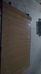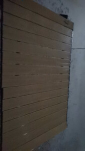 材质是铁的,在卷帘的两头分别有四个卡扣可以卡在桌子腿上,安装上之后比较牢固,颜色也很好看,大小尺寸适合两到四个人一起用,是一个长方形的桌面。