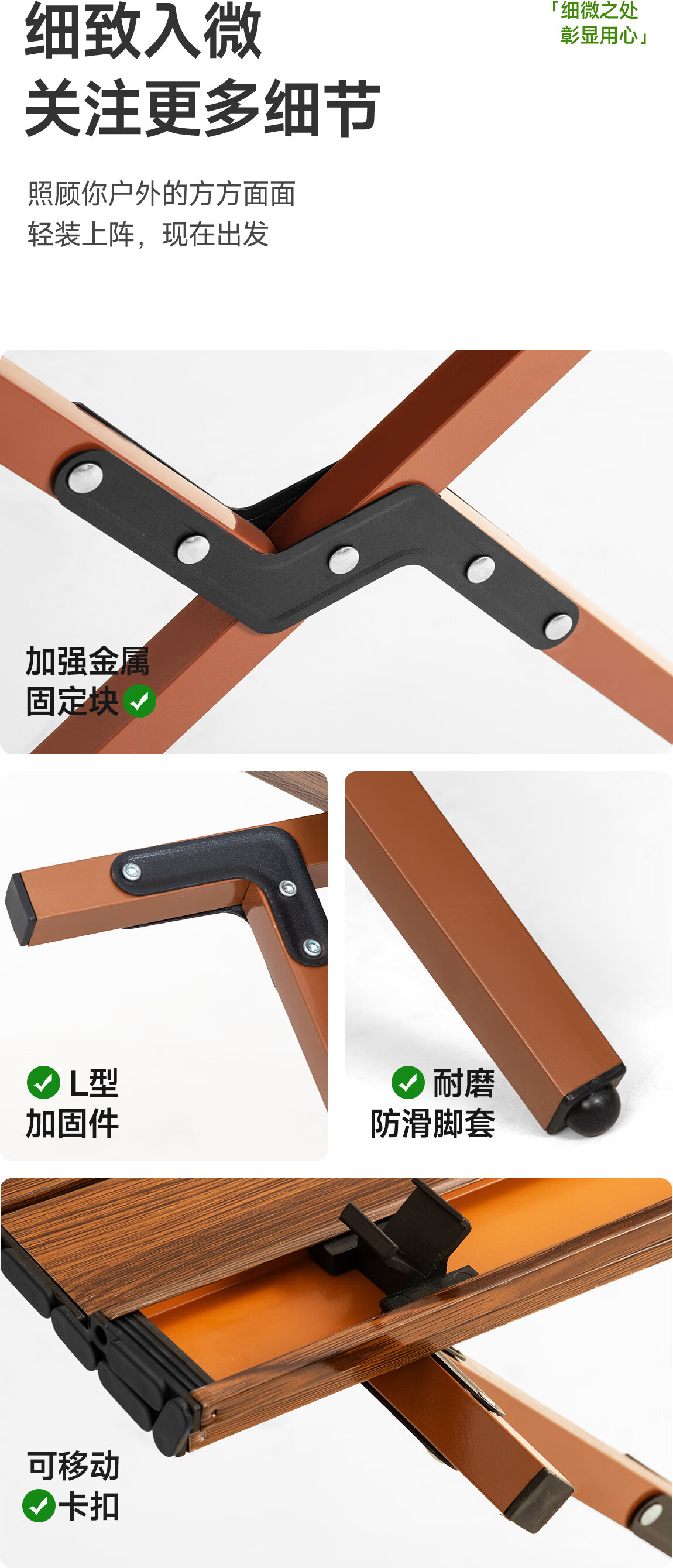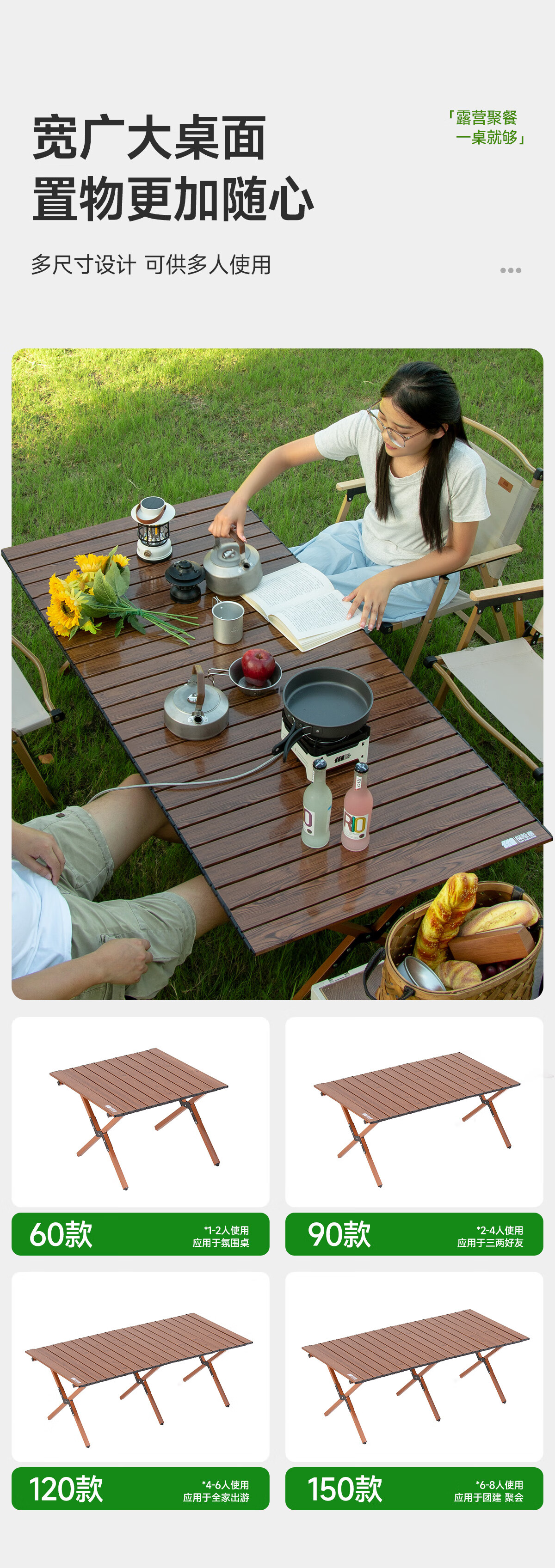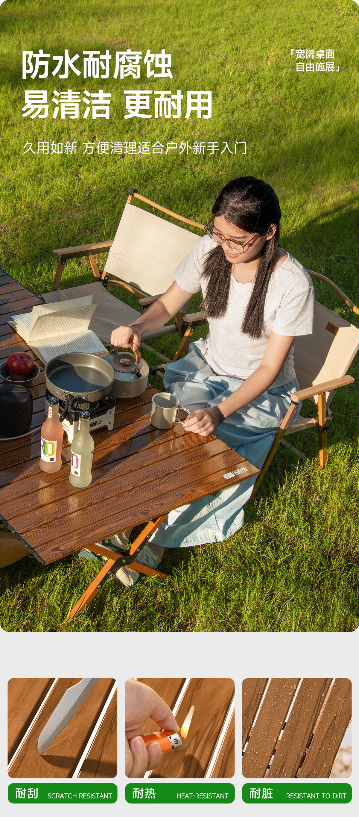 Guide Series户外铝合金折叠桌露营桌便携升降沙滩烧烤桌加宽桌自驾游车载桌 新 加宽金属 木纹黑色