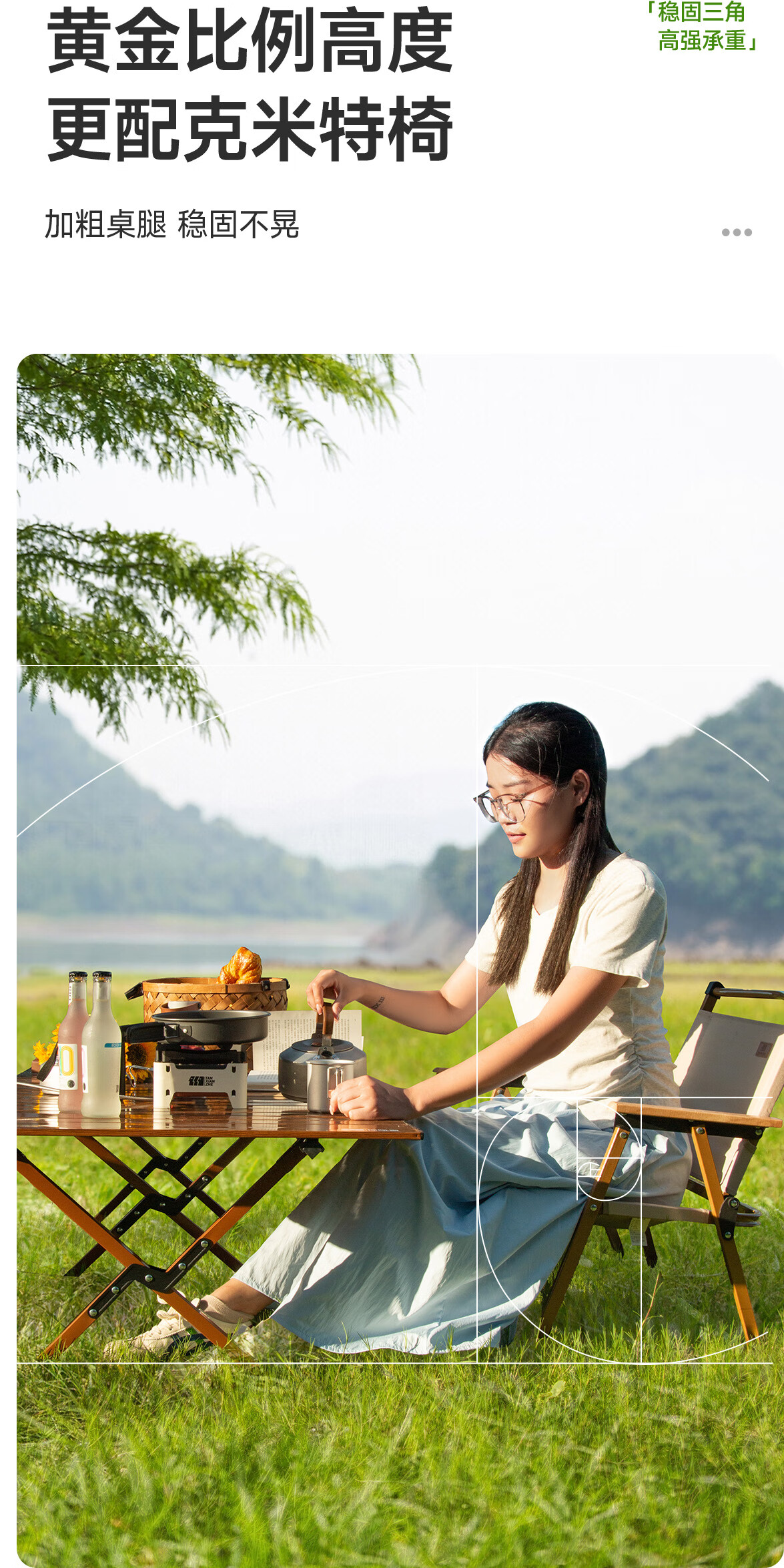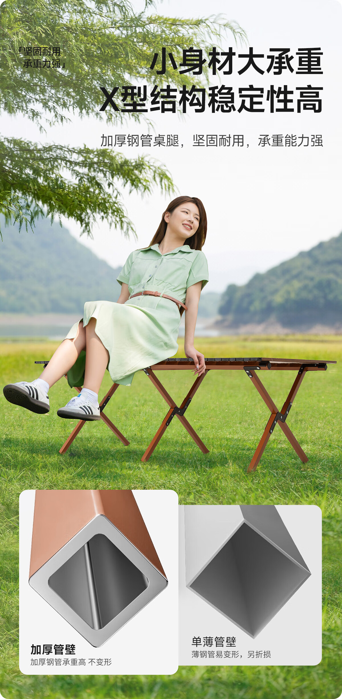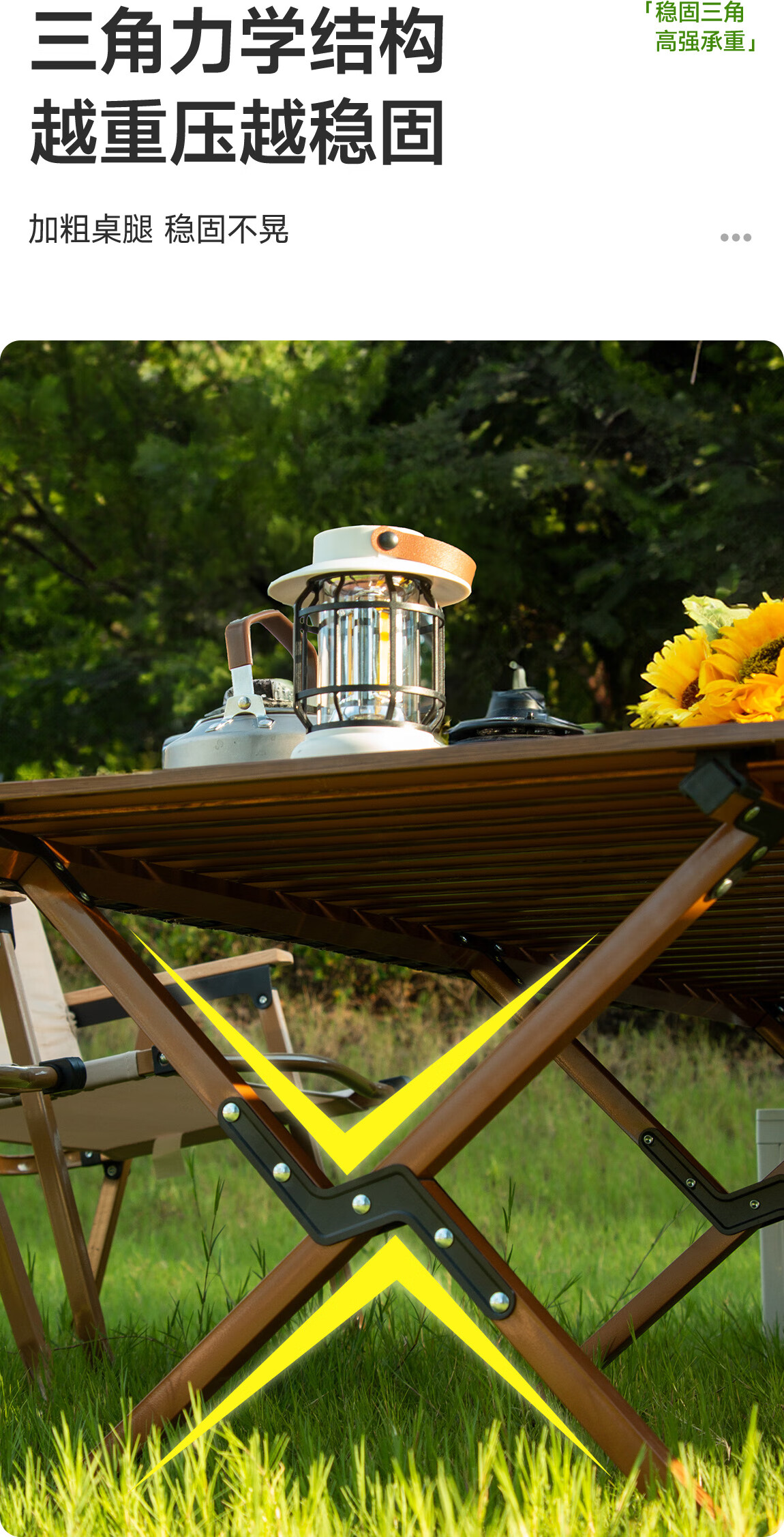 Guide Series户外铝合金折叠桌露营桌便携升降沙滩烧烤桌加宽桌自驾游车载桌 新 加宽金属 木纹黑色