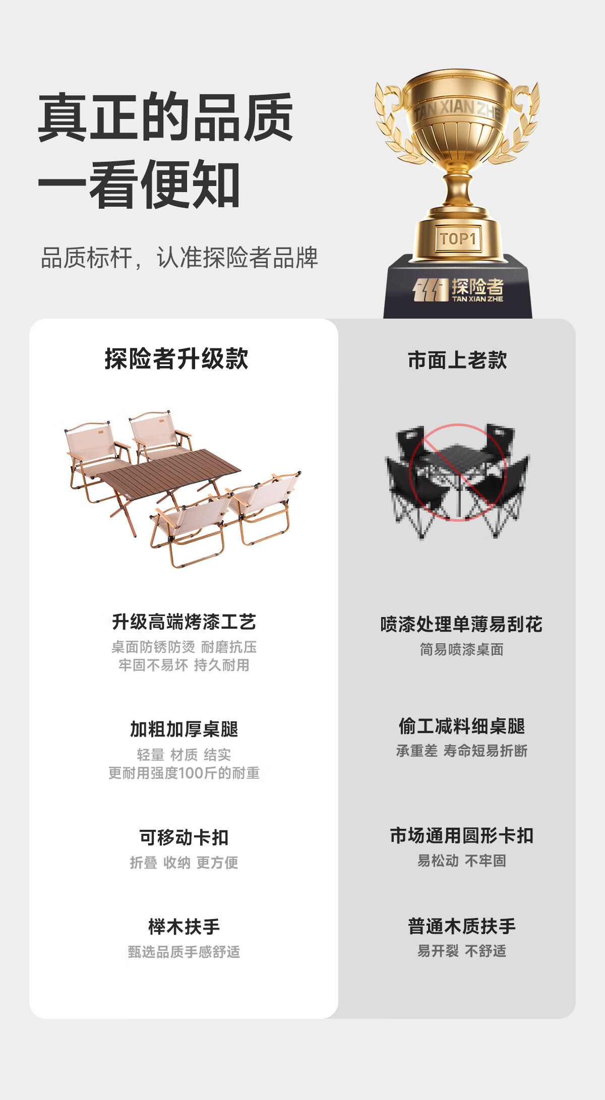 这款探险者的椅子和蛋卷桌质量不错、样式也好看、同等品牌、同等样式的,这个探险者不输给它们!性价比超高,望商家继续加油!生意兴隆!!