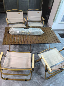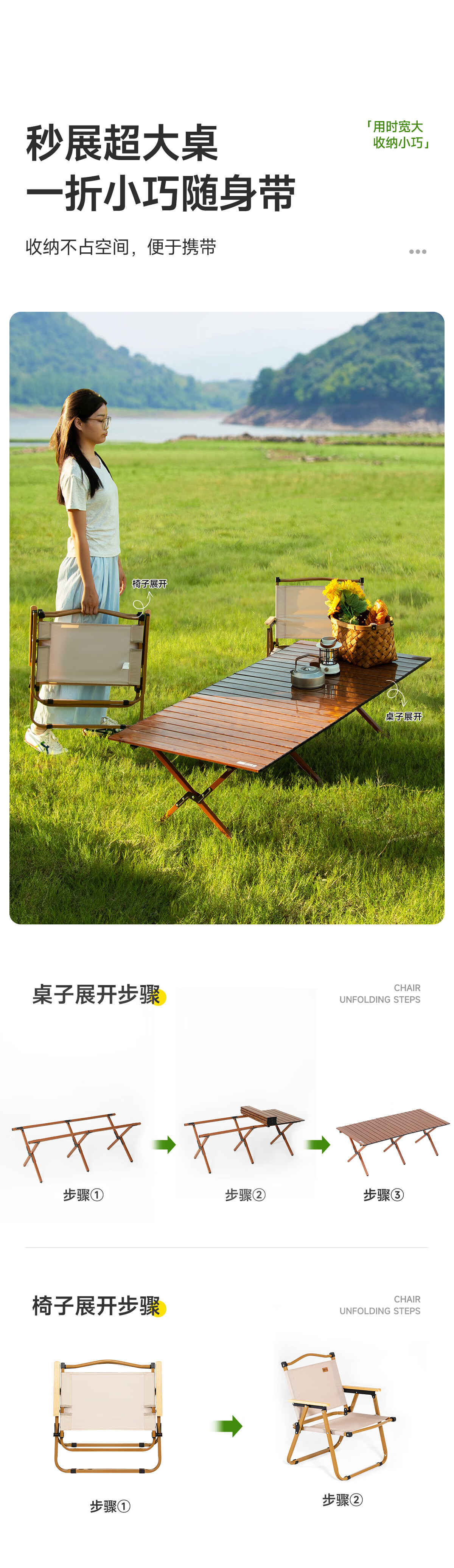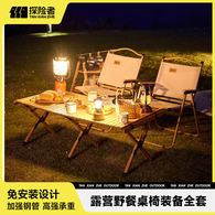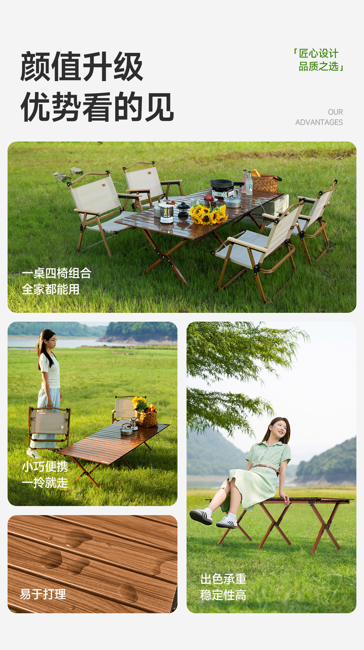 探险者户外桌椅套装一桌四椅折叠桌椅蛋卷桌克米特椅露营装备全套七件套 木色架经典卡其*2+120木色蛋卷桌