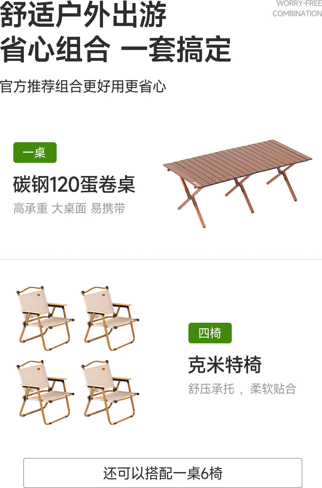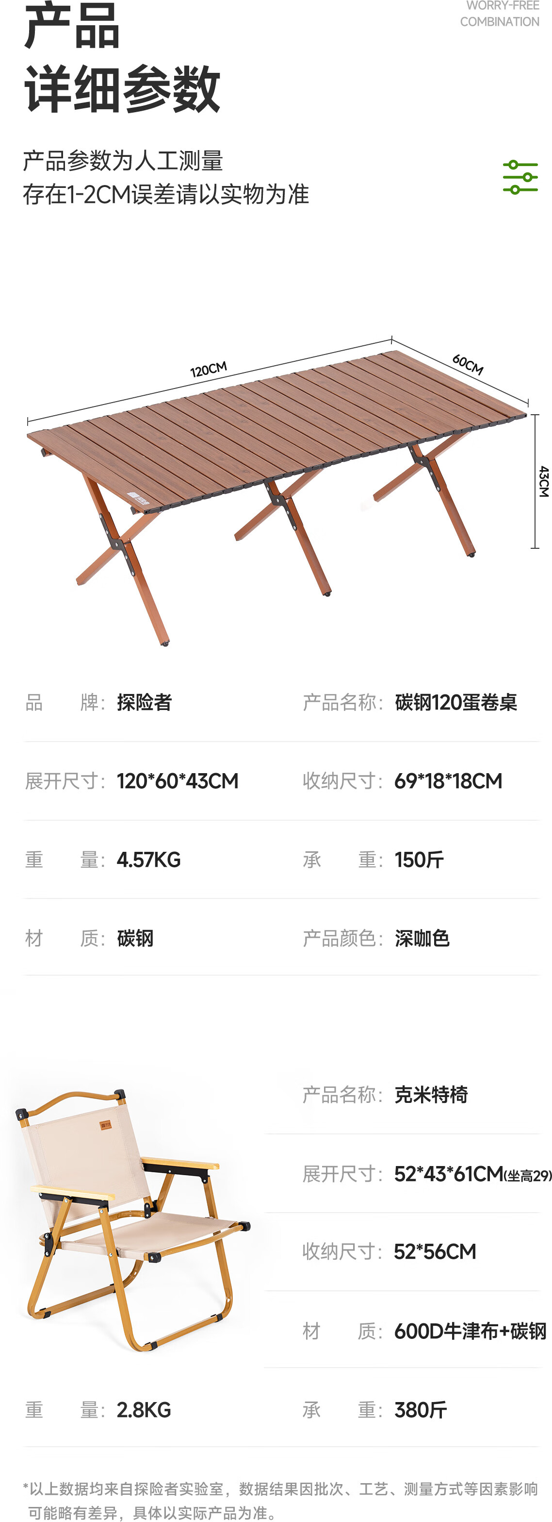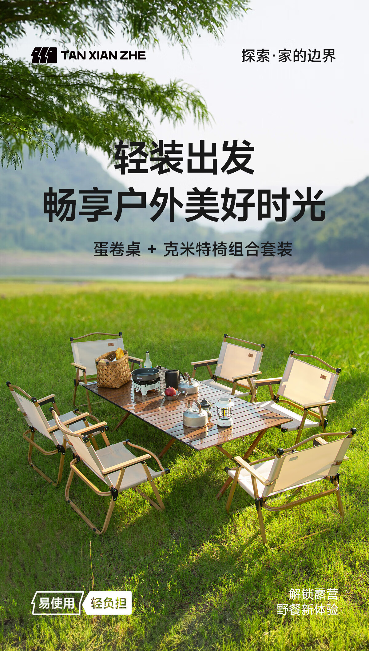 探险者(TAN XIAN ZHE)户外桌椅套装露营椅子桌子一套装备折叠椅便携野餐蛋卷桌克米特椅 120款蛋卷桌+卡其克米特椅*6