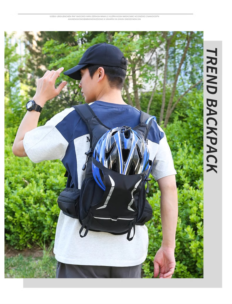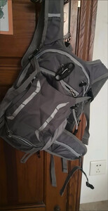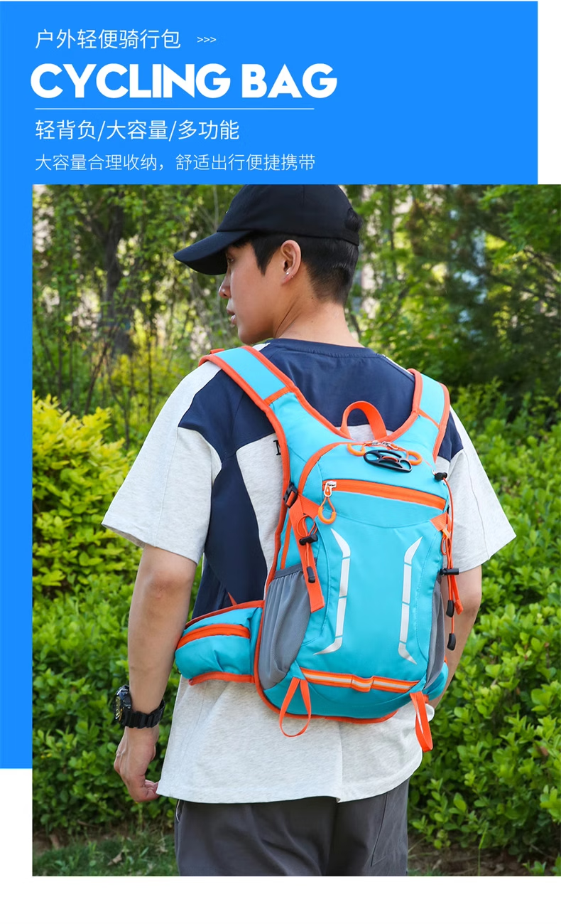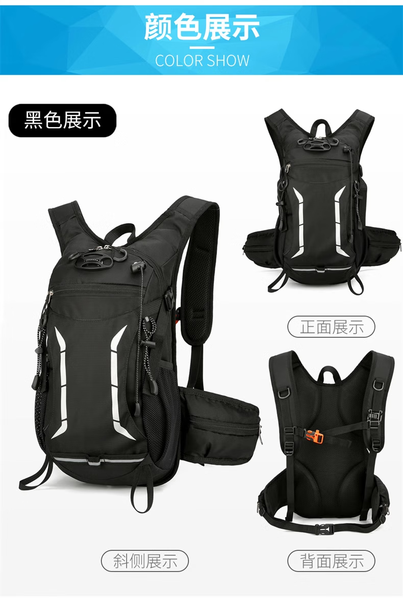 众里寻他千百度。蓦然回首,那人却在灯火阑珊处。第一眼就看上了这个小背包,黑色的耐看、大气,有两个卡扣,可以系紧收到实物之后和图片一致,非常的有质感,里面还有一个水袋的隔层,背包可以放雨伞,雨衣充电宝数据线维修工具等。小包比较实用。我把它拿来当做通勤包和登山包,以及骑行背包使用o k的啦。小背包没有看出来有什么防水的材质,目前不清楚,使用一段时间后再说吧。