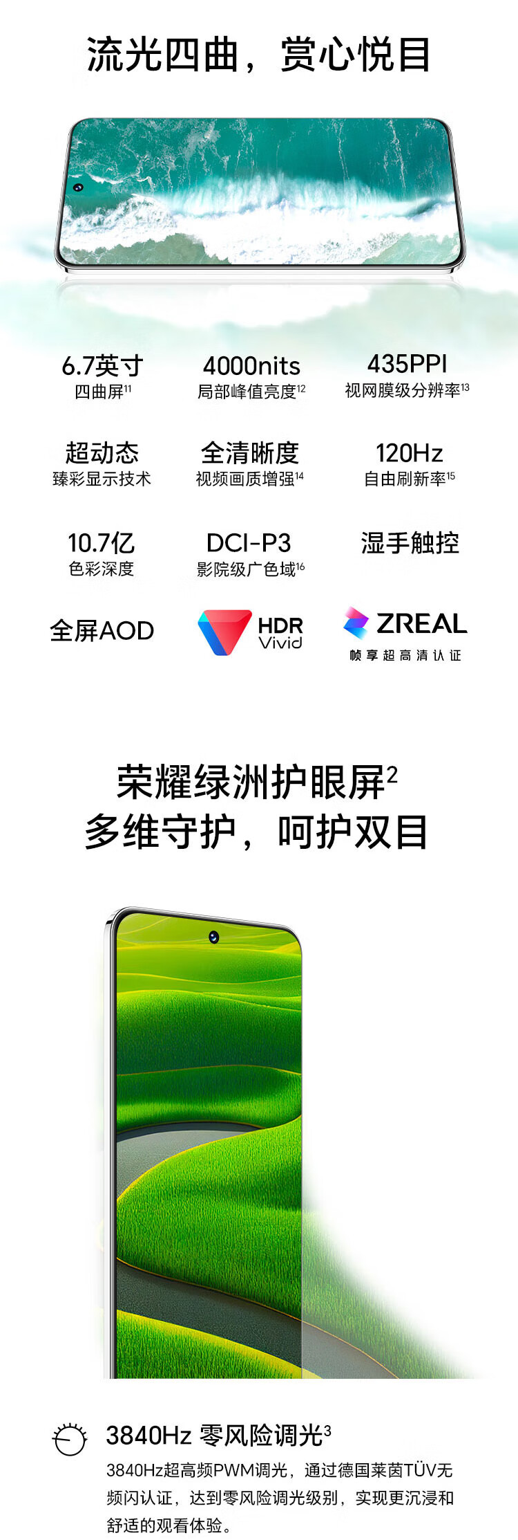高频PWM调光,全焦段影像,NFC,红外遥控,大底主摄,等深微曲屏