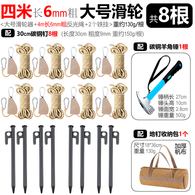 凯路德户外露营天幕滑轮拉紧器帐篷拉绳防风绳滑轮加粗反光绳子套装 【8条】卡其4M-6MM+地钉+锤+包