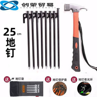 加粗地钉野帐篷钢钉天幕防风绳加长固定钉地桩营地锤 25焊黑8根+鹰橘锤+束口袋+帽+圈