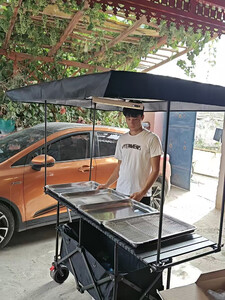 摆摊推车可折叠露营带桌子小吃车商用夜市烤肠冰粉车野餐摆摊神器 117加长桌 可升降(米车+木纹桌)