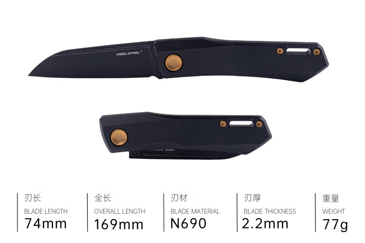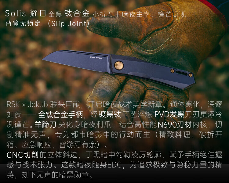 锐狮帝Real Steel Solis Titan 耀日 钛宸 金色配件 EDC 折刀 N690 户外 镀黑钛手柄[镀金钛五金件](PVD发黑刃)