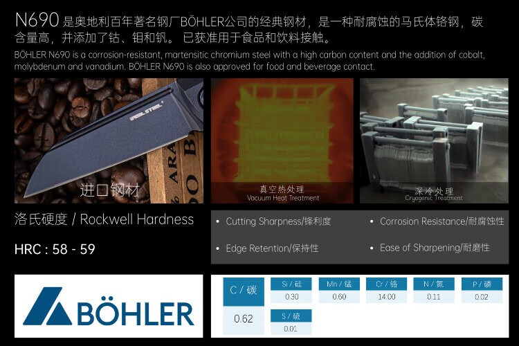 METALGROWL爆款推荐 北山物志斩2轴版户外折刀 D2钢 黑色G10