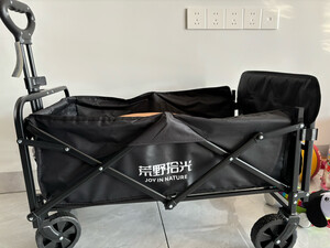荒野拾光露营车儿童可躺式户外折叠推车大号摆摊营地车野营拖车野餐手推车 曜石黑 160L 无刹车 静音轮拉杆回弹