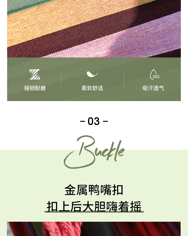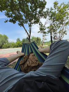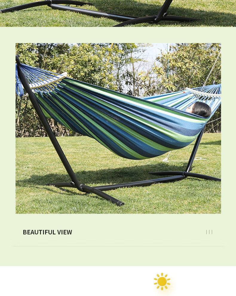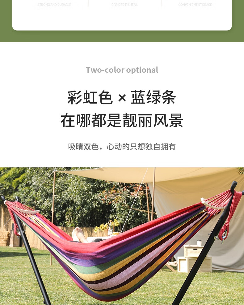这款吊床太棒了!柔软透气的面料躺上去像被云朵包裹,稳固的支架承重力超强,花园、阳台都能用。午休时随风轻摆,仿佛置身自然怀抱,连睡眠质量都提升了,强烈推荐!