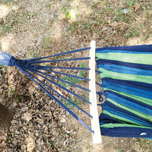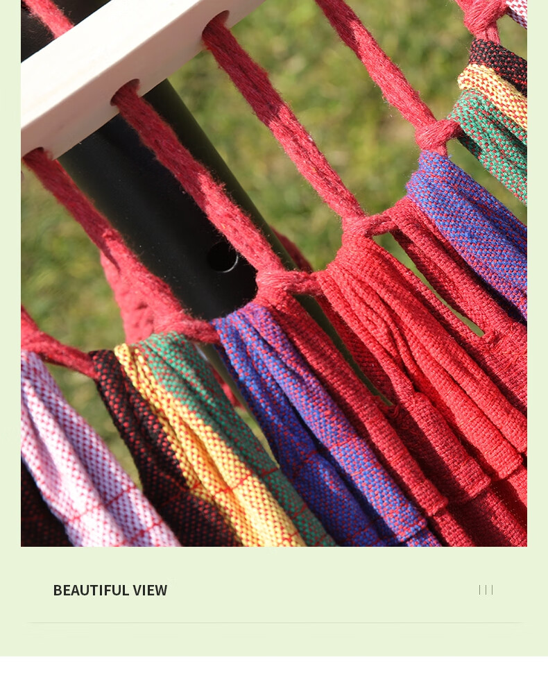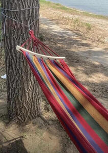 吊床产品质量很好 孩子们很喜欢 吊在两根树之间非常惬意 物流也很快 下单第二天就到了 很好的购物体验 有需要的直接入手