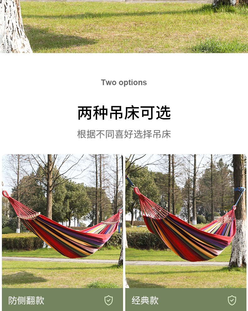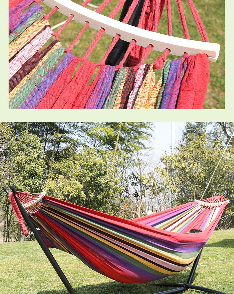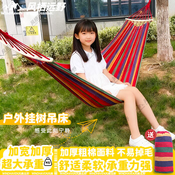 盛源 吊床户外双人 单人吊床防侧翻 帆布吊床学生宿舍室内秋千 弯木防侧翻款红色(0.8米宽)