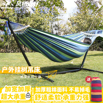 风栖远野户外吊床秋千双人500斤防侧翻月牙棒瑜伽吊床挂树露营室内荡椅 蓝色【防侧翻】190*100CM【月牙棒】 送收纳袋+加粗工业绑绳