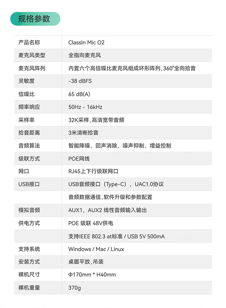 ClassinMS20A全向拾音阵列麦克风ClassIn Mic DT2