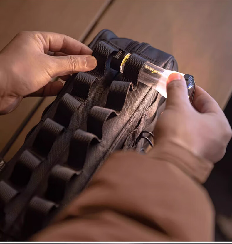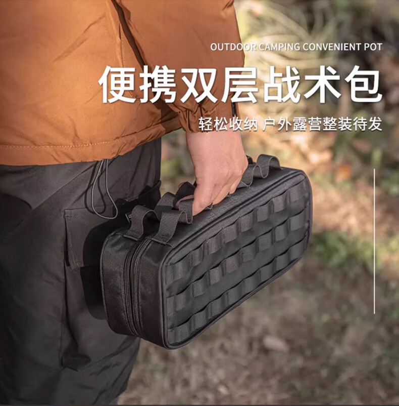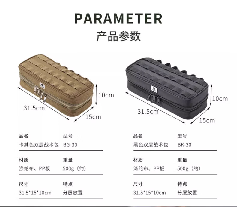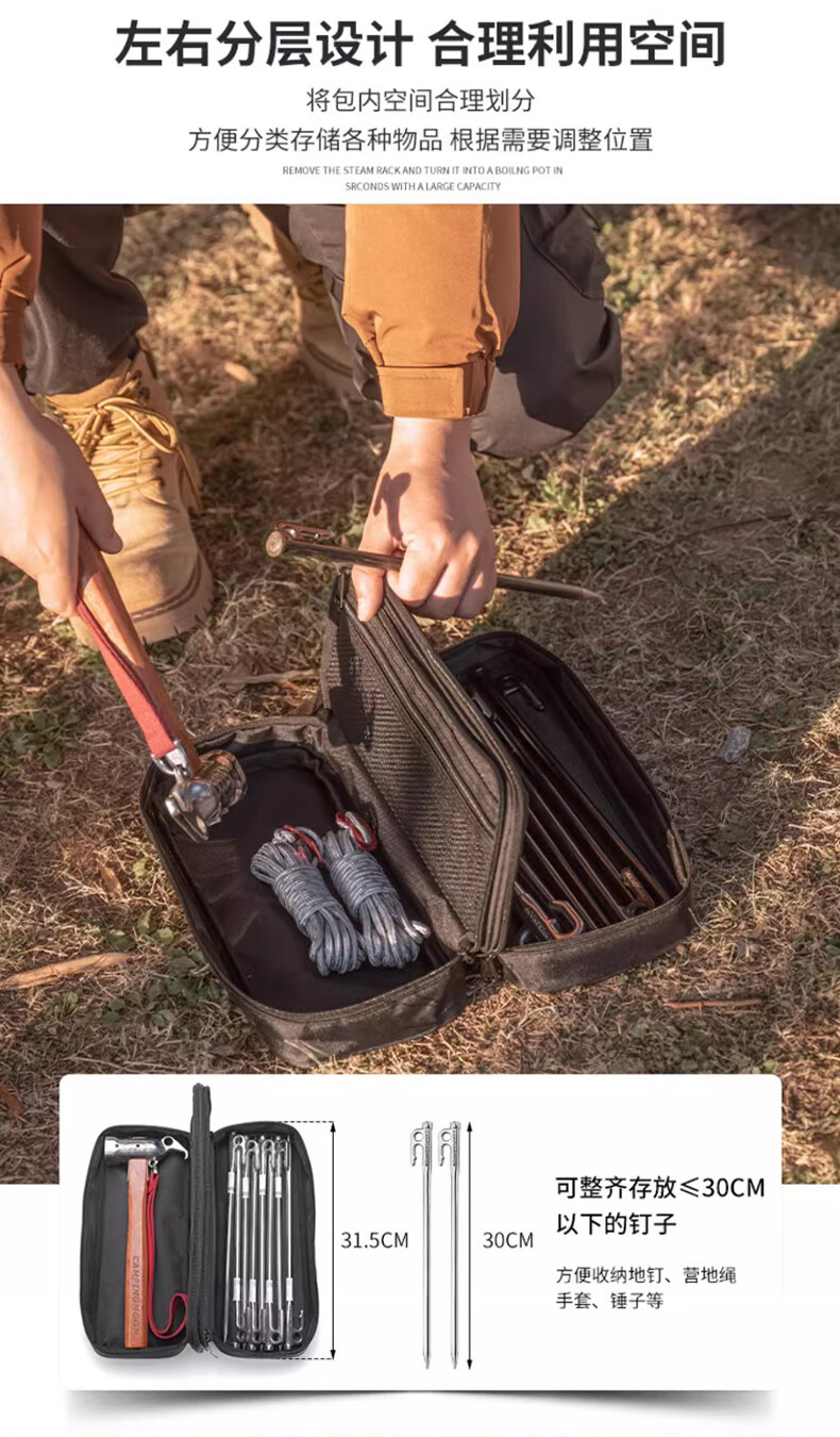 CAMPINGMOON柯曼露营战术工具包便携式地钉包多功能餐具挂袋帐篷配件收纳包 BG-30卡其色双层战术包