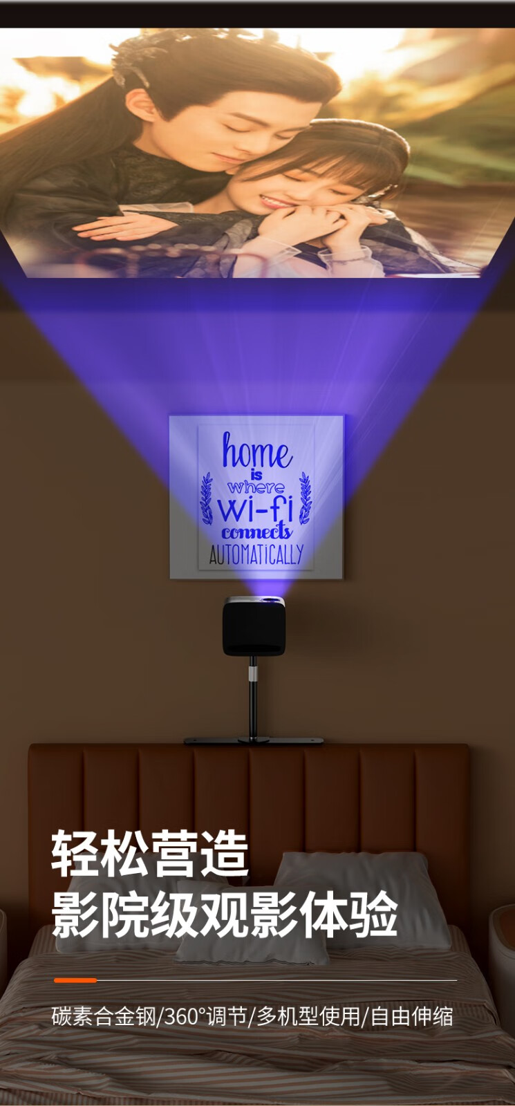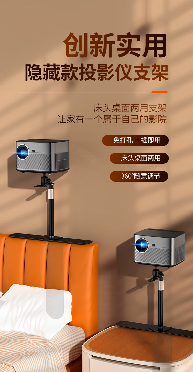 Rigal投影仪家用支架嵌入式隐藏床头桌面两用靠墙托盘云台置物架免打孔适配置物架