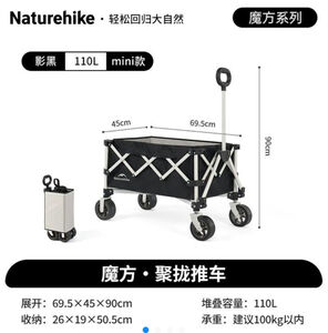 Naturehike挪客轻折聚拢折叠小推车户外露营车便携野餐车摆摊拉货手拉车装备 黑色 /推车弹力网兜
