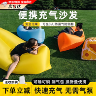 充气沙发音乐节户外沙发床露营懒人充气躺椅便携气垫床自动空气床 香橙色【2-3人/承重约545斤】 送防水收纳袋