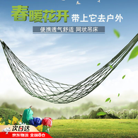 军绿色网状吊床户外露营便携吊床加粗睡袋装备送包装尼龙网兜秋千 尼龙加粗【军绿+绑绳】承重300斤