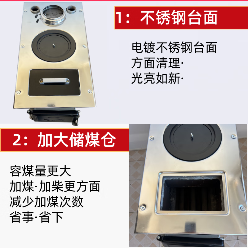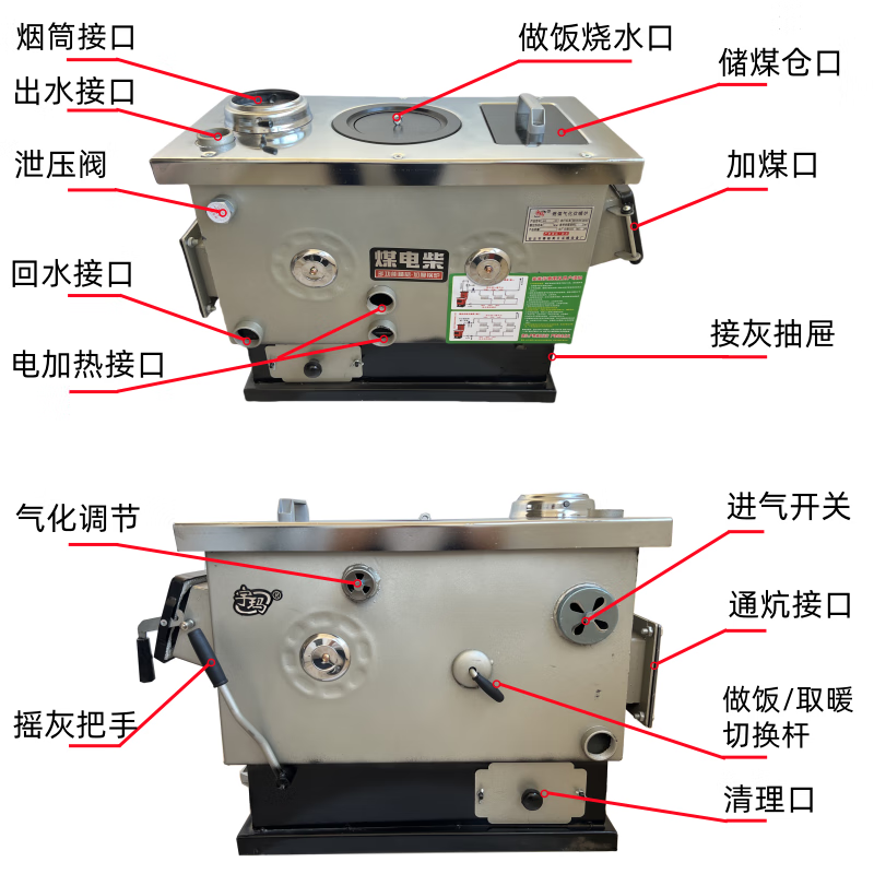 煤电柴多功能网红锅炉智能懒汉锅炉炊事烤箱炉节能取暖炉地暖两用 煤柴160#加厚型