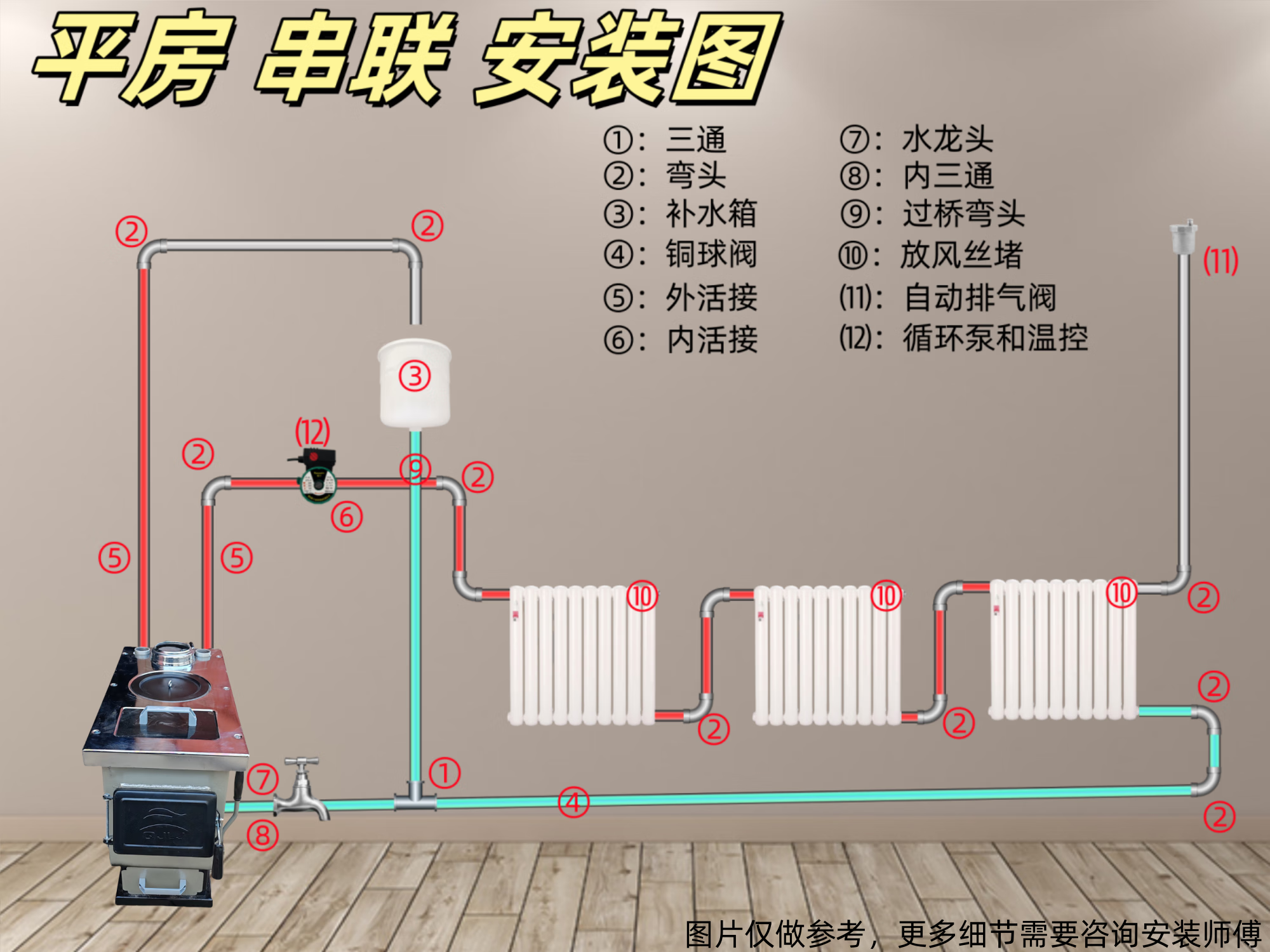 农村家用采暖炉反烧懒汉炉取暖烧水做饭通炕节能暖气地暖柴煤两用 120型懒汉炉