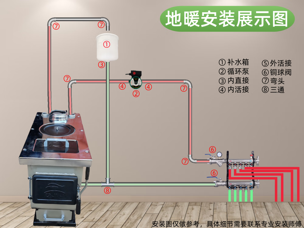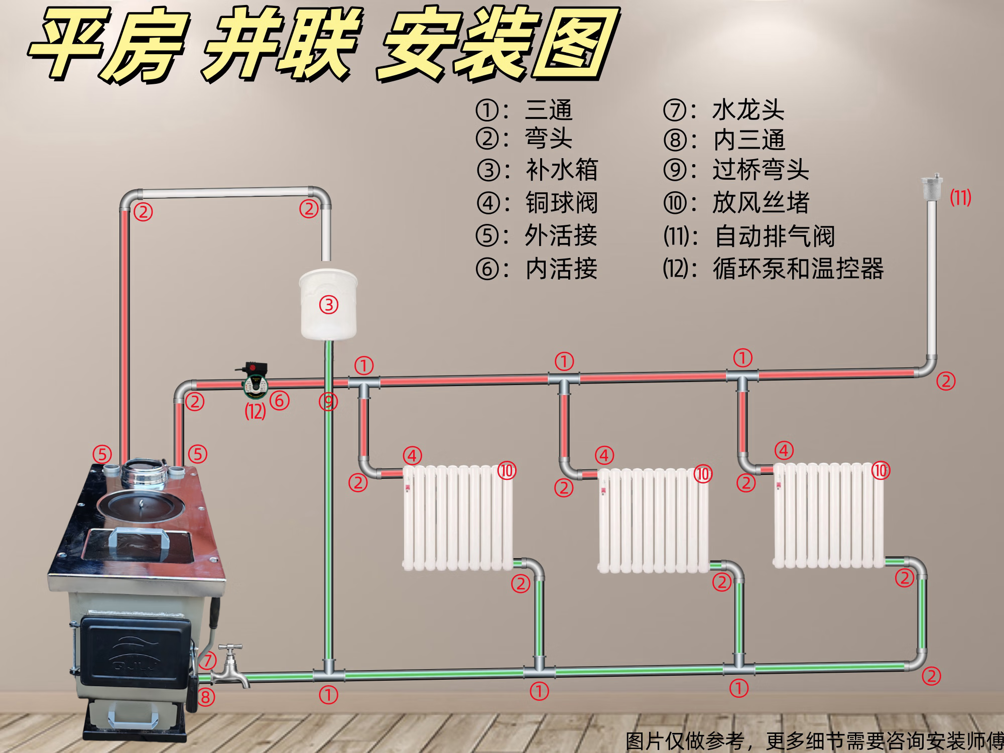 宇玛农村自建房家用柴煤两用地暖取暖炉水循环燃煤水暖炉暖气片采暖炉 80型号(钢材加厚、反烧、气化)