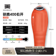 天石睡袋户外装备成人防寒木乃伊式鸭绒保暖睡袋旅行登山轻量化新驯鹿 冰焰橙400右开-【带帽款 RDS认证】