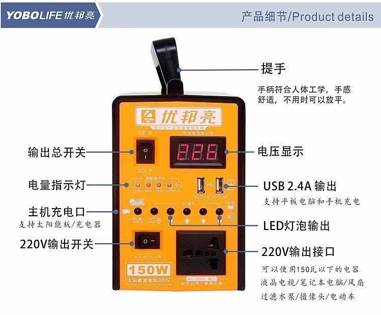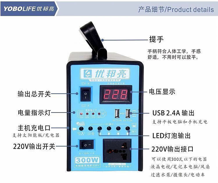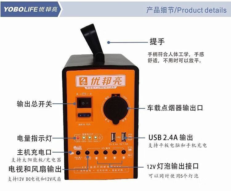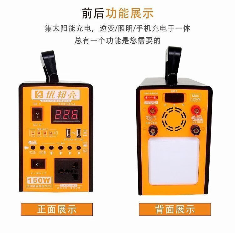 太阳能发电系统家用全套220v光伏发电机太阳能发电板户外备用电池 3606款15瓦板12伏输出双USB