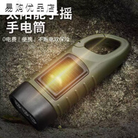 安楠太阳能手摇发电手电筒多功能露营户外应急强光充电LED照明灯 【军绿色】户外手摇手电筒