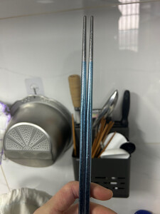 发货快,物流快,包装完好,质量良好。和描述一致,重量轻,硬度高。颜色渐变很漂亮,试过了,导热速度比不锈钢的慢,虽然没有木筷子那么涩,但和不锈钢筷子相比来说,算不滑的了。曾考虑过带有防滑工艺的钛筷,但又担心,加工和纹理过多,反而容易藏污纳垢,不如这种简单原始的设计更安全,整体满意。