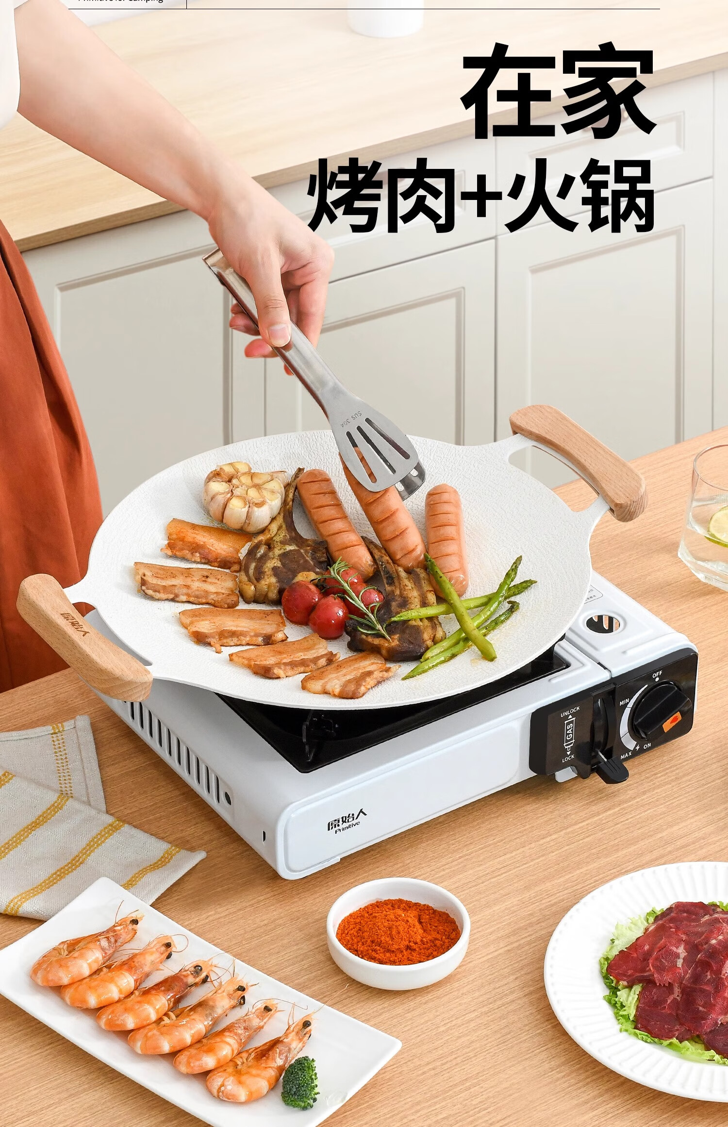 探险者(TAN XIAN ZHE)户外炉具卡式炉烧烤盘双用便携烤盘加厚电火双用烤盘露营家用野餐 明火款滤油烤盘+防烫麻绳+收纳包