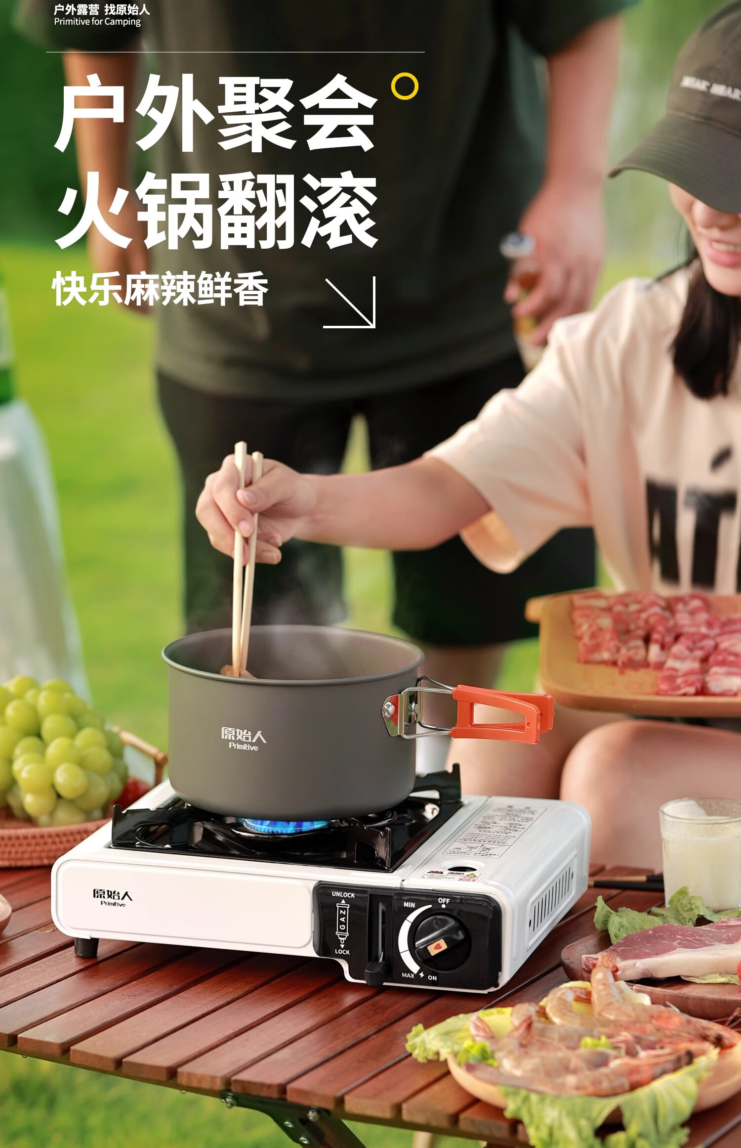 原始人卡式炉户外便携式炉具卡磁炉瓦斯炉露营炊具燃气炉野外煮茶炉 白色【配收纳箱】