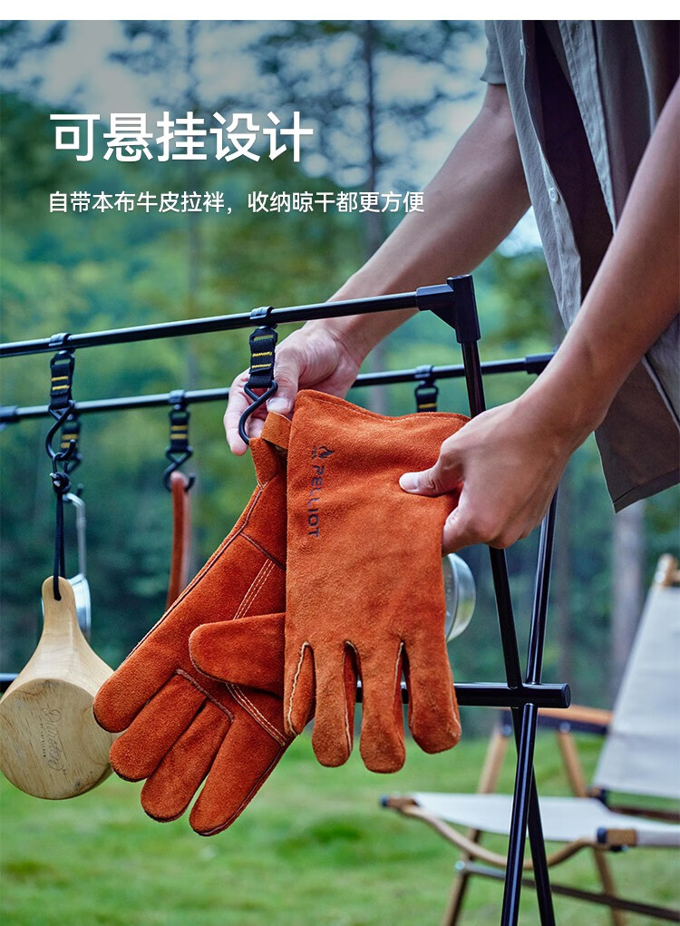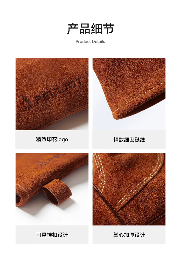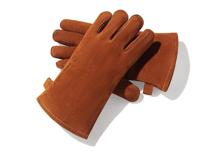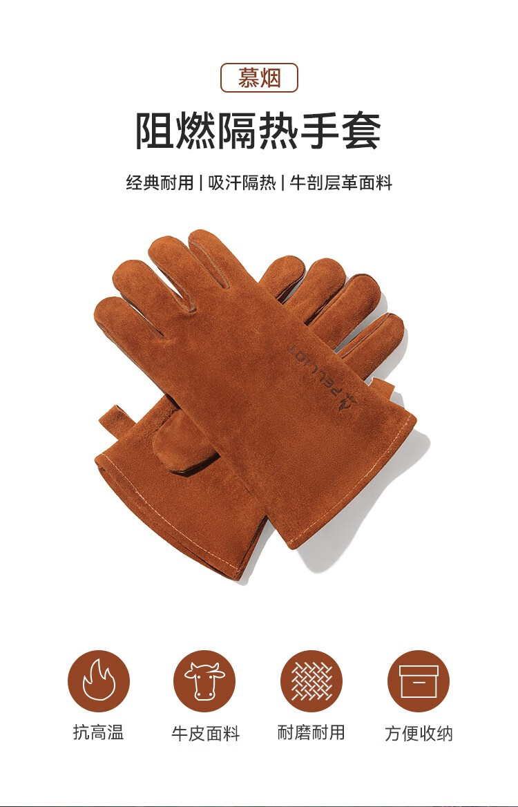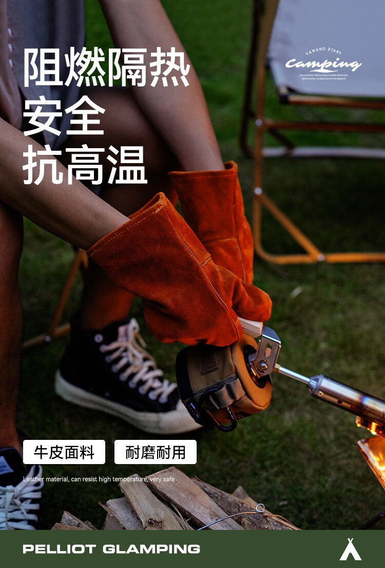 伯希和(Pelliot)隔热手套牛皮耐高温户外露营阻燃隔热防烫野炊加厚牛皮手套 焦糖色
