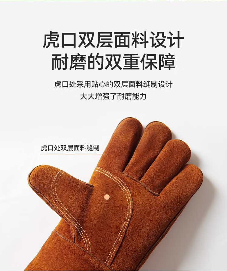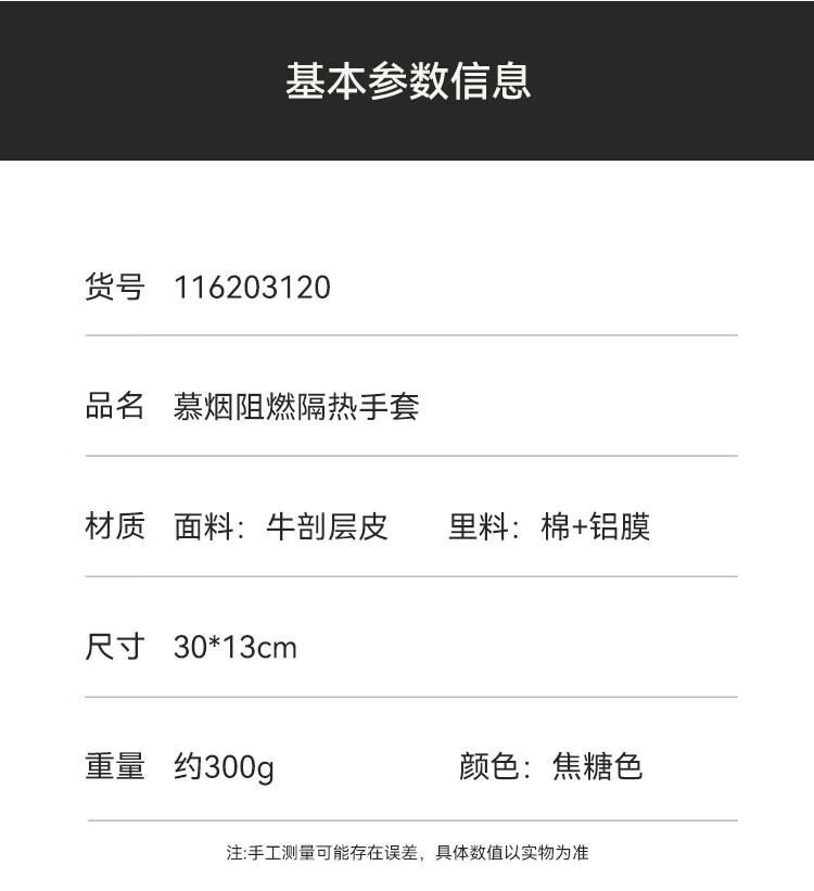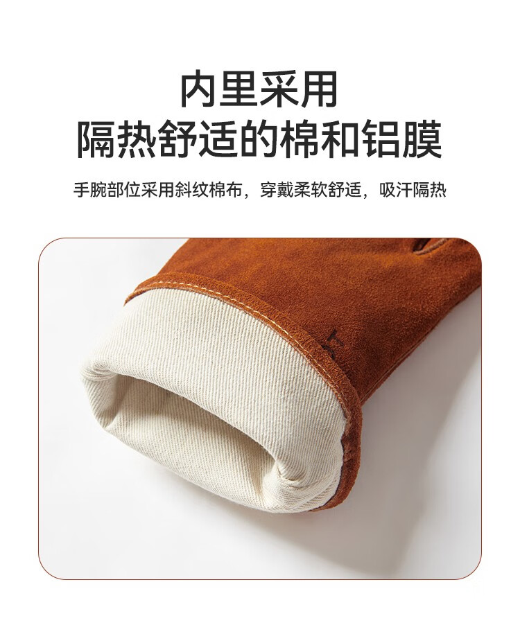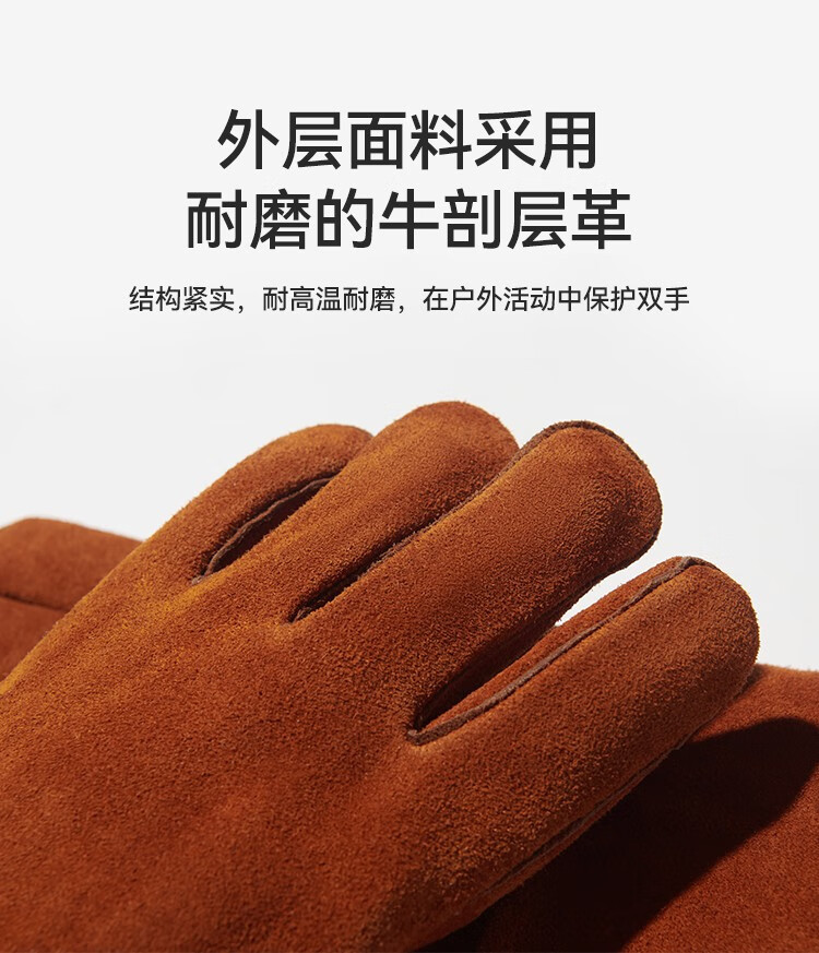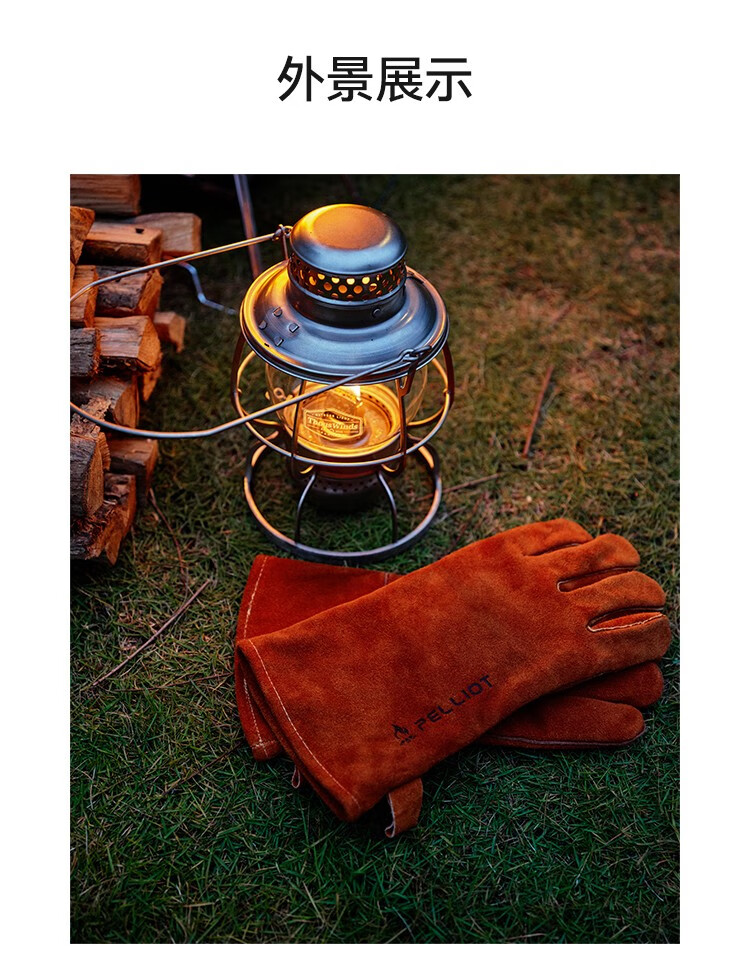 伯希和(Pelliot)隔热手套牛皮耐高温户外露营阻燃隔热防烫野炊加厚牛皮手套 焦糖色