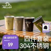 伯希和(Pelliot)HIKER系列户外水杯不锈钢茶杯露营野餐便携咖啡杯子 4色组合装-350ml/只