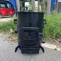 其他家新款烧煤取暖炉煤柴两用整体加厚煤气罐外壳铸铁内胆移动柴火炉 带轮移动款送火勾灰铲火钳 普通炉门